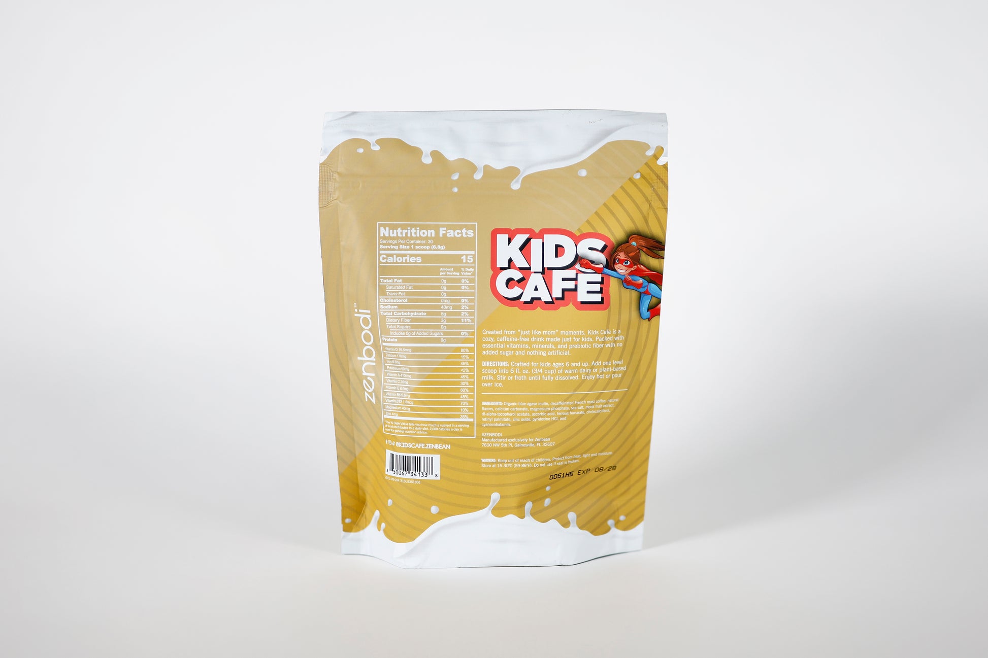 Kids Cafe is a delicious, caffeine-free beverage that gives kids the joy of a coffee-style drink with none of the sugar or crash. Made for kids ages 6 and up, it’s packed with 12 essential vitamins and minerals plus 3.4g of prebiotic fiber to support gut health, growth, and daily wellness. Whether it’s part of their morning routine or an afternoon treat, Kids Cafe makes clean nutrition feel fun.